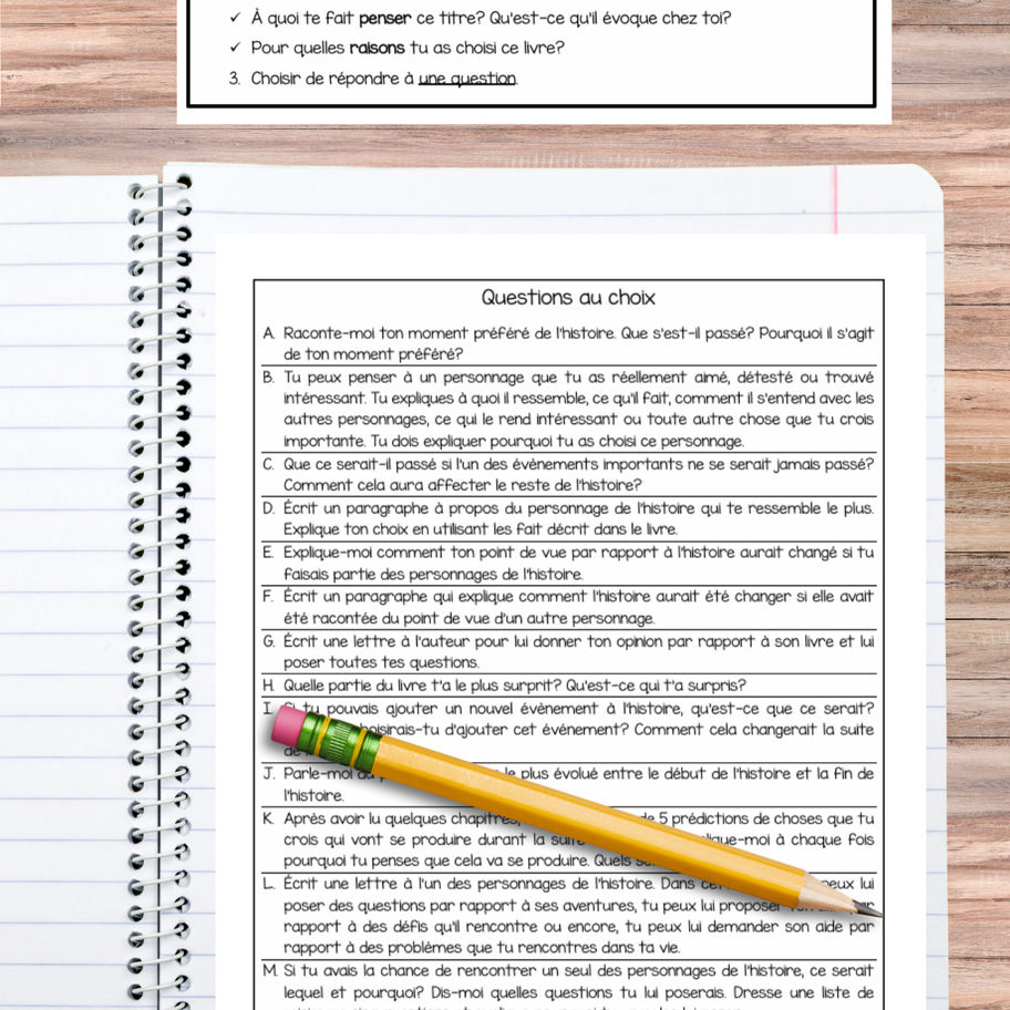 Questions variées favorisant l’analyse, l’interprétation et l’expression personnelle.